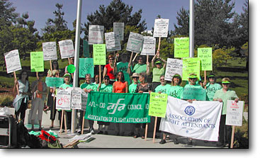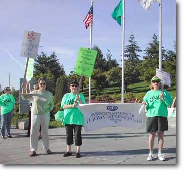 May 26, 2005 - Flight Attendants and other employees gathered for a rally at the SeaTac Flag Pavilion to warn passengers of CHAOS in Seattle.