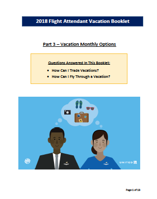In preparation for the 2018 Vacation Bidding process, we will be publishing the 2018 Vacation Booklet in three (3) separate parts to help familiarize Flight Attendants with important information.